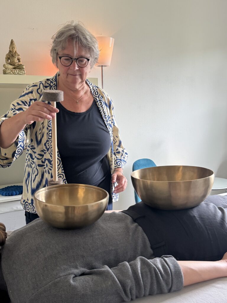Na het voorgesprek ga je liggen op de massagetafel, je kleding kan gewoon aanblijven. Makkelijk zittende kleding is daarom fijn. Ik plaats de klankschalen op of naast je lichaam en breng die zacht en behoedzaam tot klinken. De frequenties van de afzonderlijke schalen passen goed bij de verschillende lichaamsgebieden. De harmonische klanken kalmeren lichaam en geest.